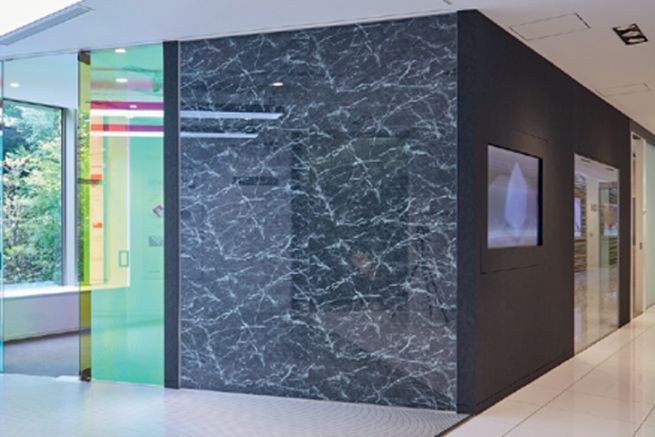 DI-NOC Glass Finishes vinyl films are available in 18 realistic glossy textures such as wood, stucco, ceramic, metal, stone and fabric. The opaque film can be applied to many different glass surfaces such as walls, panels, table tops, shelves, lighting fixtures or reception counters.