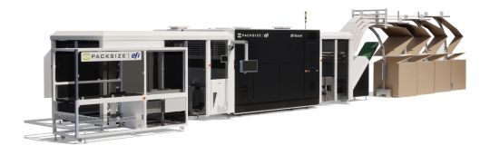 Packsize, a specialist in packaging automation, and printing press manufacturer Efi unveil the first fruit of their collaboration. Together, the two U.S. groups have developed the Packsize Efi X5 Nozomi, the world's first automatic production system for customized RSCs incorporating color printing.