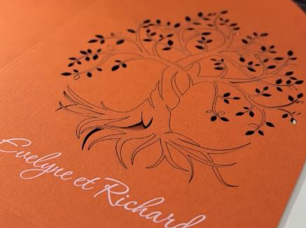 Imprimerie Chauvat-Bertau (ICB), based in Collégien in the Seine-et-Marne region of France, has showcased all its craftsmanship and technological expertise in an invitation signed by graphic designer Marie Grange. Produced on GF Smith's Rust paper, the design features an extremely precise laser cut of an openwork tree.