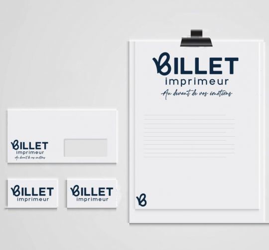 Based in Damery in the Marne region, Billet Imprimeur is modernizing its image with a new logo. The hundred-year-old printer, a specialist in top-of-the-range labels for the wine industry, is banking on a modernized signature, an evocative slogan "Au devant de vos émotions" ("Ahead of your emotions") and a B-shaped butterfly symbol.